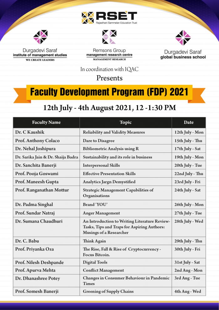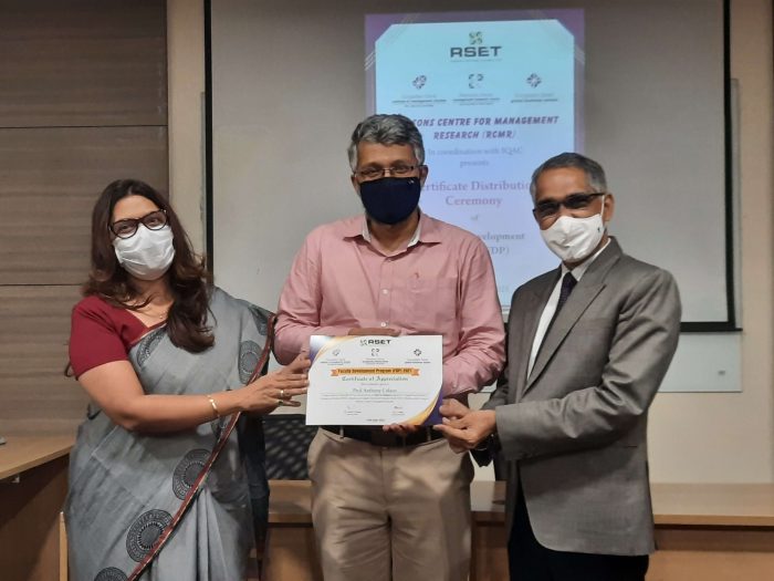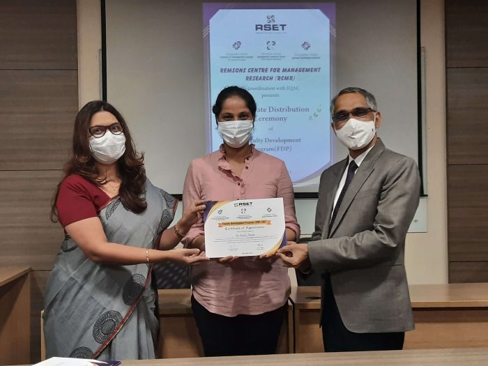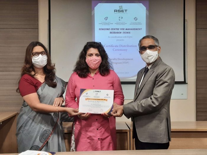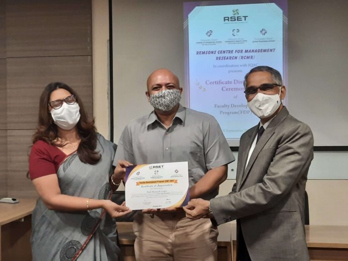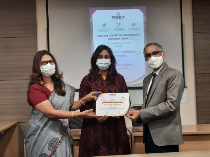 Remsons Centre for Management Research (RCMR) conducted sixteen FDPs in emerging areas of business and managerial scholarship in July 2021. RSET Chairman Shri Ashok Saraf addressed at the inaugural session of FDP on 12 July 2021. Dr. Bigyan Verma, Director, SIES delivered the keynote address for the event.